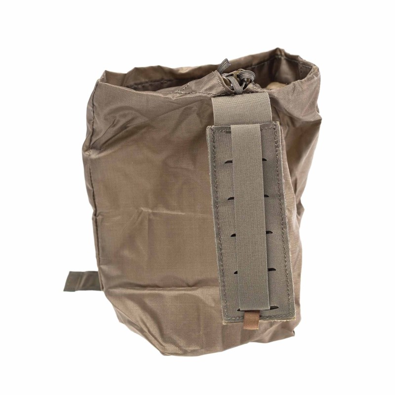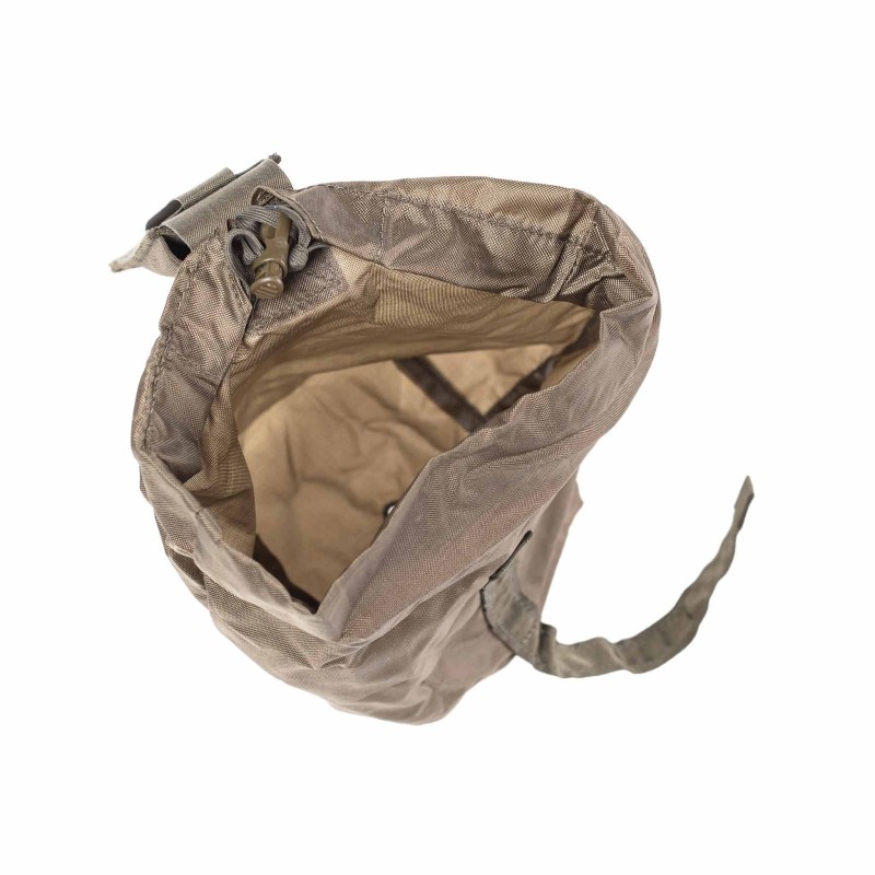 When unfolded, the pouch provides approximately 3.5 liters of storage space, ideal for holding empty magazines, gloves, tools, or other essential gear during training or operations. The opening features an adjustable drawstring with cord lock, ensuring that contents remain secure while moving. A drainage hole at the bottom allows water and debris to escape, keeping your gear functional in all conditions.