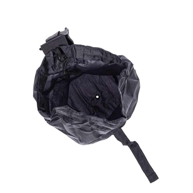 When unfolded, the pouch provides approximately 3.5 liters of storage space, ideal for holding empty magazines, gloves, tools, or other essential gear during training or operations. The opening features an adjustable drawstring with cord lock, ensuring that contents remain secure while moving. A drainage hole at the bottom allows water and debris to escape, keeping your gear functional in all conditions.