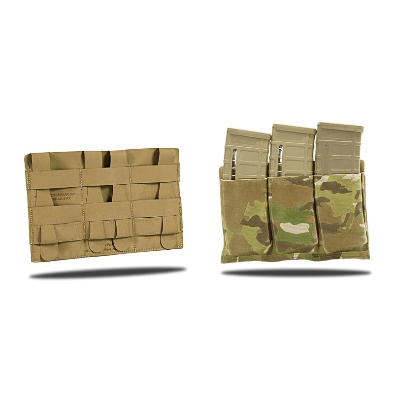 The MX234 Panel features three Multi-Calibre Pouches, each designed to securely hold various sizes of rifle magazines. This versatile panel can either serve as a standard panel on a plate carrier or be converted into a micro-rig. It provides a quick method for gearing up and adapting to evolving mission requirements