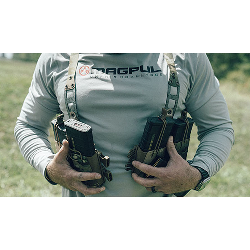 A super modular chest rig base kit. Just add the pouches, shoulder straps and a backstrap. Compatible with all shoulder straps that have 1” buckles, including our ARS Bravo module which includes both shoulder straps and the backstrap.